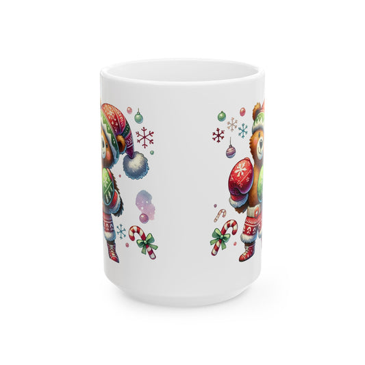 Festive Shadow Boxing Bear Ceramic Mug| Christmas Coffee Cup | Holiday Gift |