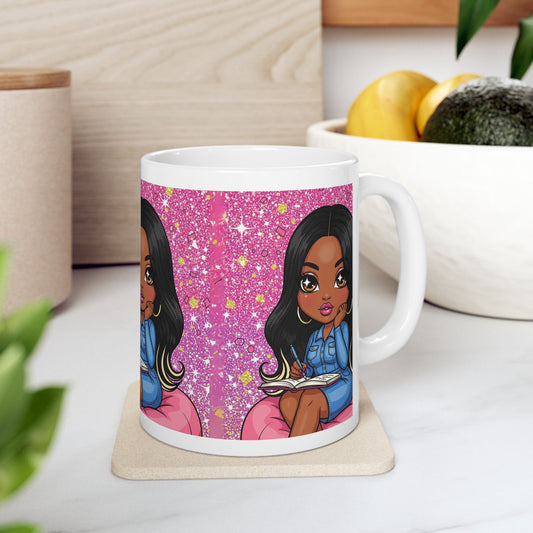 Reading Lady Ceramic Mug – Book Lover Coffee Cup for Writers