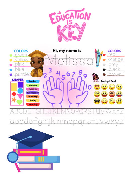 Little Learner Trace Play Sheet, Canva Editable Preschool Template, Name, Alphabet, & Colors